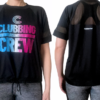 Soft touch fashion fit t-shirt with ribbed collar in black with electric blue, neon pink and yellow liquid C print.