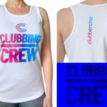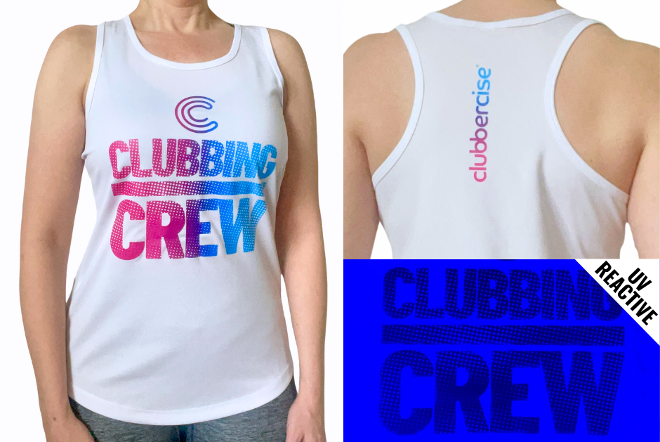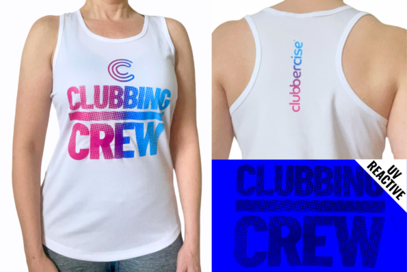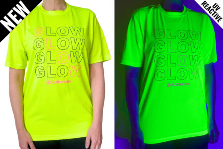 Slim fitting, breathable neon yellow tank top with UV reactive blue, purple, pink and orange print.