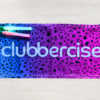Stylish ballpoint pen with a metallic rainbow effect barrel, white Clubbercise logo, silver trims and black ink.